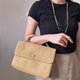 羊皮的Bally 風琴手提袋,淡黃色很適合春天,可以點亮平實的穿搭。除了手提外,會附送長肩帶兩用,斜背或側背都可以。