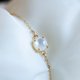 約8mmの石は、月光のように穏やかな白さと、奥行きのある虹色の干渉色をあわせ持ち、手元に清楚な華やぎを添えてくれます。クラシカルでありながら優しい温もりを感じさせる雰囲気が魅力です。