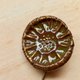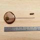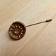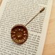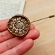 這支別針的綠很特別,是市面上少見的釉色,我使用特殊的上色方式,讓金色壓克力分布在別針外圍,在光下有淡淡的金色反光,裡面的花蕊是慢慢點上去的,試了好幾次才成功達到這種效果。