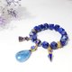 **1.圖上青金石切面珠寬約10.5mm,海藍寶水滴高約26.2mm、寬約19mm、厚約9.5mm,整體手圍約16cm。**