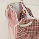 御守袋的創作理念是把我們常見的日本御守吊飾等比例地變成一個可以能夠放進隨身物的御守袋,配上全人手編織的繩結。御守繩結是可以自由拆卸更換款式的設計,讓客人在日常穿搭的選擇上更豐富。