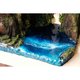 以數種板材及水泥製作骨架,再雕塑山壁紋理,接著運用樹脂材料製作海洋。
