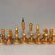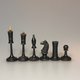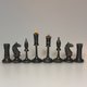 A unique Russian / Soviet chess set from 1931 to 1939. Analysis size. A rarest find. One of the most distinct old Soviet designs. Called by collectors Averbakh II, as this model resembles a similar one used by Grandmaster Yuri Averbakh. Very good vintage condition with beautiful patina. Few minor chips were carefully repaired by a professional restorer. Please study photos. King: 8,5 cm, pawn 3,5 cm. Chess pieces only, no board. If you need a matching board, please write a personal message.