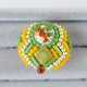 そのビーズを引き立てるように隙間なく刺繍をすると、カラフルでにぎやかで、まるでおしゃべりをしているような指輪に仕上がります。