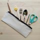 加寬型餐具袋,可裝入全家人的餐具或小寶寶專用剪刀。亦可當成筆袋使用,放置中長型水彩筆、毛筆等。