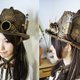 - 蒸汽朋克 青年少年 仿金屬鉚釘 補丁風鏡 帶亮燈 高禮帽