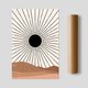 《曠野之日 Desert Sun》以最簡潔的構成語言,捕捉自然最純粹的力量。畫面中心的黑色圓形如烈日般灼熱,四周放射的線條象徵光與能量的綻放。下方層疊的駝棕色丘陵,則帶出沙漠的靜謐與厚度。
