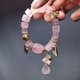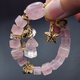 本件嚴選星光粉晶,精工磨製圓潤隨型珠飾、方形珠飾(天圓地方、賢良方正、儀態萬方)、蓮篷(好事蓮蓮、清淨高潔),相佐閃耀金飾物(蝴蝶-福氣,帆船-一帆風順,星星-吉星高照,心-心想事成),寶石水光勻淨、閃現星光,每個角度都相當甜美迷人,滿溢著時尚美麗的戀愛風情,並有助事業、招桃花、好人緣之意。
