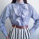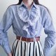 白藍條紋棉質襯衫,前方有蕾絲荷葉邊,真漂亮