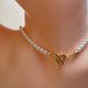 每個女生的內心都有千千結。紗織小姐搜尋白透櫻花水的天然淡水 Baby珍珠按秩序排列,配以愛心結OT扣,拉直全長約41cm,佩戴在胸前,讓人感到你的心靜溫柔嫻靜,讓你胸口有愛,閃閃發光。4.5~5 mm的Baby珍珠為天然淡水akoya,是中國大陸以akoya的培育方式在淡水中培育養成的珍珠,既具有akoya的炫彩光澤,又具有淡水珍珠的一眾優點,是不可多得的珍品。