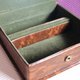 - 一看見這個首飾盒就想起《天使愛美麗》這部電影,這就是電影中的夢幻墨綠色。首飾盒的外層是木紋仿皮面,內層是墨綠色的絨面,還有手縫的小圓鏡。盒內分成三個空間,中間的細縫可以放戒指或者最容易弄掉的耳環。