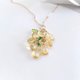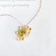 シトリンだけだと少し寂しかったので、小さくて綺麗なグリーンアゲートを、中心にいくつかつけました。ポイントにペリドットを入れています。