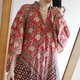 此長袍洋裝圖騰為手工蓋印,材質純棉。