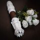 White wedding bouquet holder inspired by Rey's lightsaber hilt