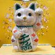 日本清水燒招財貓 花結晶 杏 千万両 特大 左
