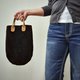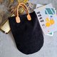 本體採用麂皮製作, 提把為植鞣油蠟皮製作