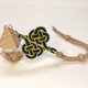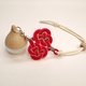 * 精油瓶木頭的地方為松木,可以做為精油擴香的媒介;瓶身上方的雙錢結是象徵古代的兩個錢幣綁在一起,結利用獨特的扁繩和日本的有紋線或是金蔥線做編織,讓結藝看起來靈活不失呆板,和精油瓶綁在一起成為更具有特色的精油隨行杯。