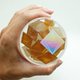 將幾顆美麗的光石琥珀糖投入玻璃杯中,
