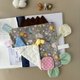 ★花色選擇為正面表布布料,安撫巾邊條的布料由設計師搭配