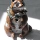 吃飽沒事做的純手捏陶瓷浣熊擺飾/乾燥花器/陶偶 - 花瓶/花器 - 陶 咖啡色