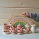 This wonderful set of dishes and rainbow for dolls will please your child.