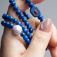 天然阿富汗青金石手串+綠碧璽+巴洛克珍珠+蜜蠟