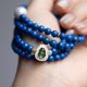 天然阿富汗老料青金石手串,繞手四圈佩戴,青金石偏莫蘭迪色,微金微白,帶玉化料,油性、密度高。