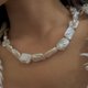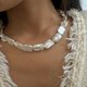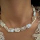 這款方片珍珠不走完美路線,每一面都有屬於自己的起伏:有的像山嶺,有的像浪脊,有的像雲層緩緩堆疊。