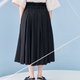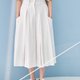 大活摺及假門襟的細節使圓裙兼具個人特色與實穿性,鬆緊帶腰頭可以舒適穿著一整天,是一件可以輕鬆搭配的風格單品