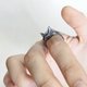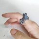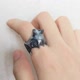蝙蝠造型銀戒,蝙蝠的小牙齒也有特別做出來,翅膀為圖騰鏤空設計,可調整戒圍。