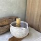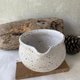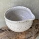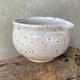 This cup/bowl is made from speckled clay and dipped in white smooth glazed .