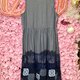 OTT獨一無二•日系重工灰紫色薄牛仔針毛刺繡手勾蕾絲連衣裙