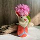 **A Lu 傲兔陶花器/擺飾,採用特殊美國進口白瓷陶土及釉藥,手揑塑及手繪,原創本作品僅此一件**