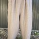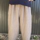100%麻的紧身裤。两边插口袋好用的裤子。腰部用松弛的橡胶和绳子调节。 材料:麻100%(拉米亚麻)深色老鼠色 尺寸:M~L 长90 宽60(最宽的部分) 胯下42 胯下56厘米。 男女通用