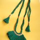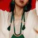 Macrame 手工編織,以繩結紋理表現珠寶造型,奔放的配色與流蘇,簡單的上衣就能展現波希米亞風。