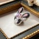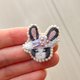 帽子上飾有藏紅花花痴的兔子別針。