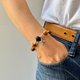 材質 : 橄欖木珠、黑瑪瑙、金屬、水晶彈力線