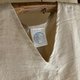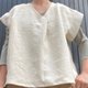 虽然是没有透明感的堵住眼睛的布料,但是非常柔软,穿着起来很舒服。 宽松的设计,可以叠穿。 材料:麻100% 主体/生成素色 袖口/条纹 尺寸:M~L 长度56 身宽57 开襟18 袖子24 袖宽5厘米 *洗衣请放在手洗或网上用洗衣机洗。 缩短脱水时间的话,不会起皱纹,可以省去熨斗的麻烦。