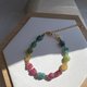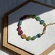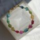 螢光彩虹色系碧璽原石是這條手鏈的重點。配上藍色調的小貔貅。跟其他水晶手鏈疊戴都很好看哦~