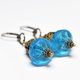 透かしブラスキャップの中には、カットが施されたラピスを2粒と、ブルーのヴェネチアアンティークビーズ忍ばせています。