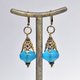 - ブルー算盤型アンティークボヘミアビーズと繊細装飾ブラスキャップ、ラピスとブルービーズのピアス
