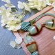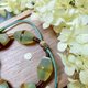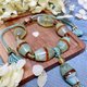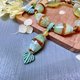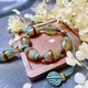 手串的編織以湖水綠色為主色調,搭配翠綠與深咖啡色的段染線,構造出一種清新脫俗的風格。手串收尾的設計巧妙點綴上似金魚尾巴的葉子,既富有造型感,又彰顯出自然之美,令人感到涼爽和舒適。這樣的色彩搭配不僅視覺上吸引目光,實際佩戴時,更能透過瑪瑙的冰潤觸感,讓手腕感受到清新與活力。