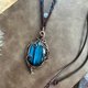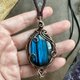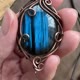 使用拉長石,配以純銅線,以繞線方式手作而成, 然後再加上復古做舊效果, 再拋光處理令花紋更具深度和對比.