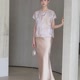 - 【桑蠶絲】新中式復古中國風 人絲提花/垂墜上衣/半裙