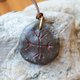 ★介紹:此項鍊純手工捏製完成。項鍊上的符印是四個重複的盧恩Algiz 結合的混合盧恩符號,對應神性連接、直覺與魔法守護。項鍊正面有上釉、背面沒有釉,可利用這面含氣孔的特質用於括香使用、項鍊也可用於魔法儀式搭配魔法由使用。