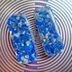這款長形迷你奧剛以閃亮的金色西藏金剛杵為核心,兩端各放著金絲玉,背後是阿賽斯特萊石、青金石及並使用銅與黃銅的金屬刨花,意在增強能量流動。