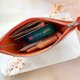 日本橘子橙拼純白壓紋 / 皮革化妝袋 / 皮革小物包