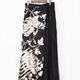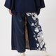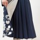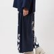 以牡丹與幾何圖形為主題的大膽設計,結合和風與現代感的袴風寬褲。布料上施以金屬箔印花,散發華麗光澤。外層呈現如同圍裙般的裙襬造型,間隙中可見內層的百褶褲設計,展現層次美與立體感。可輕鬆打造融合傳統與時尚的摩登和風造型,是一款兼具個性與優雅的亮眼單品。