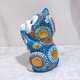 以清新青色為主調,搭配白色、黃色與綠色細節,貓咪雙手合十象徵祈禱與招福🌸