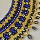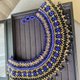 項鍊是以多色番珠(壓克力珠)手工編織而成,常見於許多原住民族或其他族群的傳統服飾中。色彩鮮明、光澤細緻。全程手工完成,工序繁複、需高度專注與技巧。傳統工藝師已漸凋零,已難再現,僅存此條獨一無二的作品。